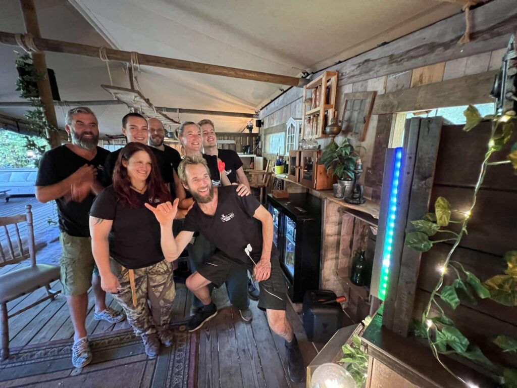 Wij bieden in uitzonderlijke gevallen overnachten aan op onze locaties. We hebben tot 24 bedden in een canvas tent beschikbaar, maar deze zijn alleen te boeken in combinatie met een uitje. De slaapvoorzieningen zijn simpel maar robuust, en liggen midden in het Dwingelderveld. Om deze reden moet het ook na 22:00 stil zijn en mag er geen versterkte muziek worden gespeeld. Neem contact op voor de mogelijkheden en voorwaarden.