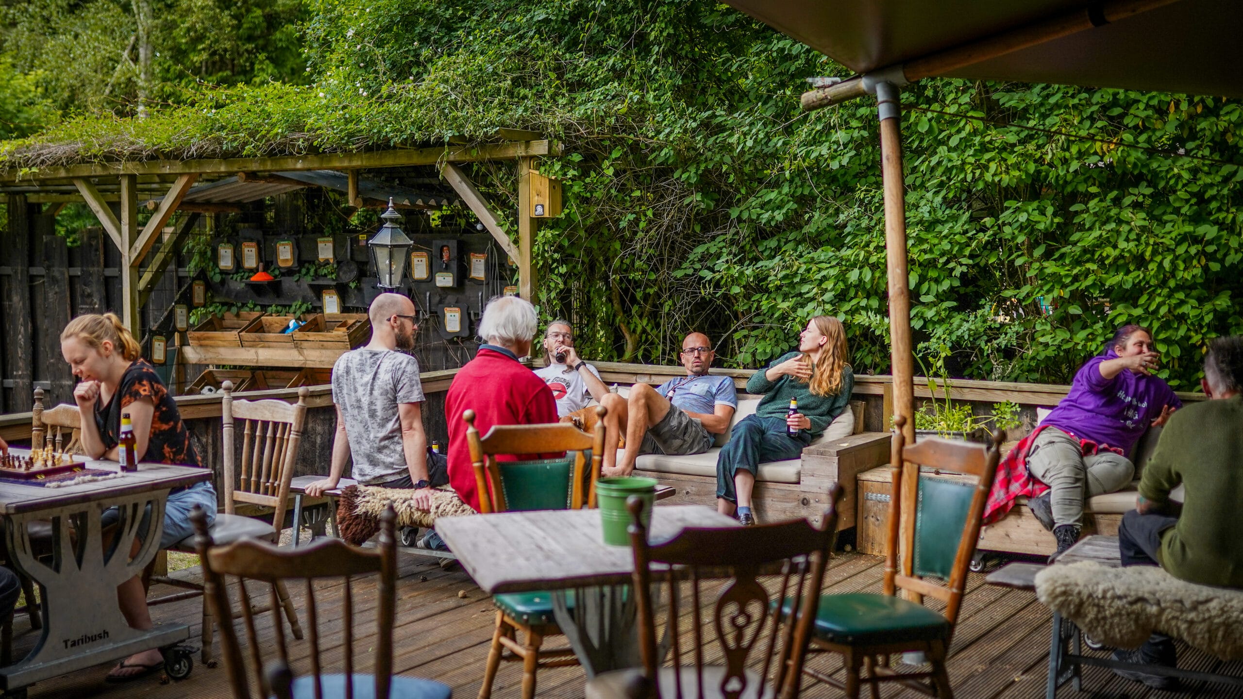 Zodra je de tent binnenstap, heb je het gevoel dat je een bruin café binnenstapt. Alleen hoef je hier niet bij de bar te bestellen, bij de uitjes bij Taribush pak gewoon zelf je drankjes uit de koelkast. Doe of je thuis bent!